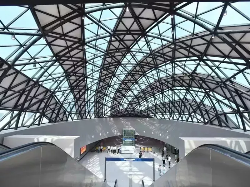 Основная часть стальной конструкции здания железнодорожного вокзала изготовлена ​​из высокопрочной стали и построена с использованием современного инженерного проектирования и технологии модульного строительства. Дизайн подчеркивает интеграцию функциональности и эстетики. Стальные фермы с большими пролетами или решетчатые конструкции могут создавать прозрачные пространства без колонн для удовлетворения потребностей в распределении пассажиропотоков. Сочетание стеклянных навесных стен и металлической крыши не только обеспечивает естественное освещение, но и создает легкий и динамичный современный образ. В то же время стальные конструкции обладают отличными сейсмическими и ветроустойчивыми характеристиками, а сталь поддается вторичной переработке, что соответствует концепции «зеленых» зданий и становится идеальным решением для строительства современных эффективных, экологически чистых и интеллектуальных станций.